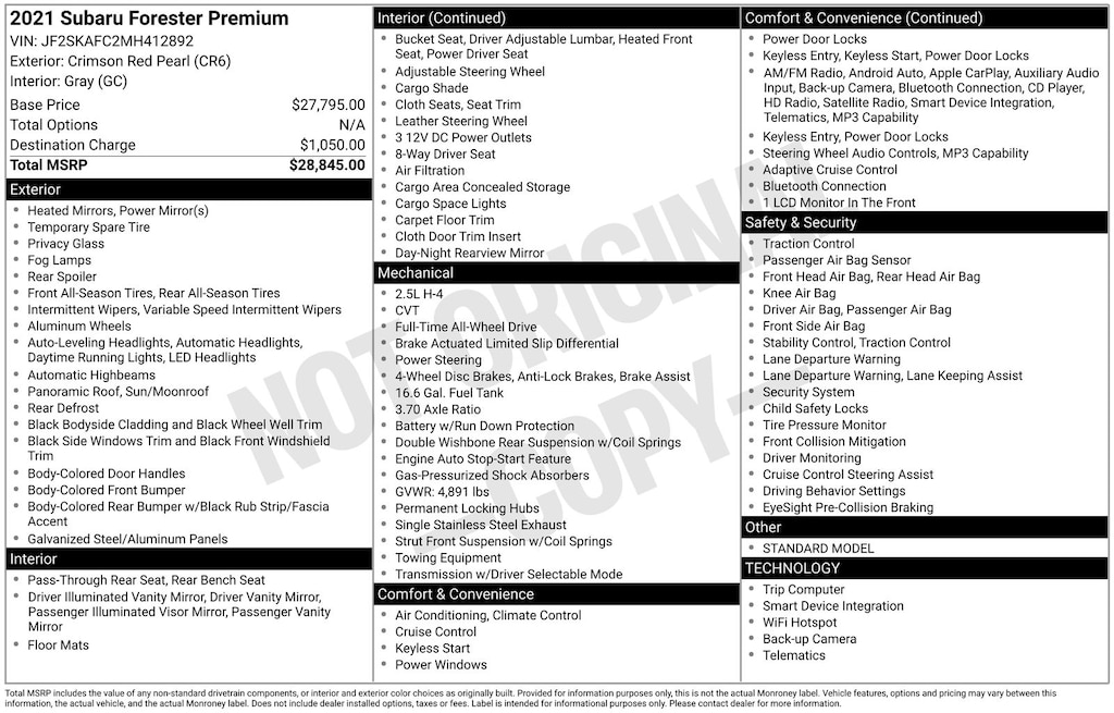 Experience the exceptional versatility and quality of the 2021 Subaru Forester Premium. Visit our showroom today and let our knowledgeable team guide you through all the features and capabilities that make this SUV a standout in its class.