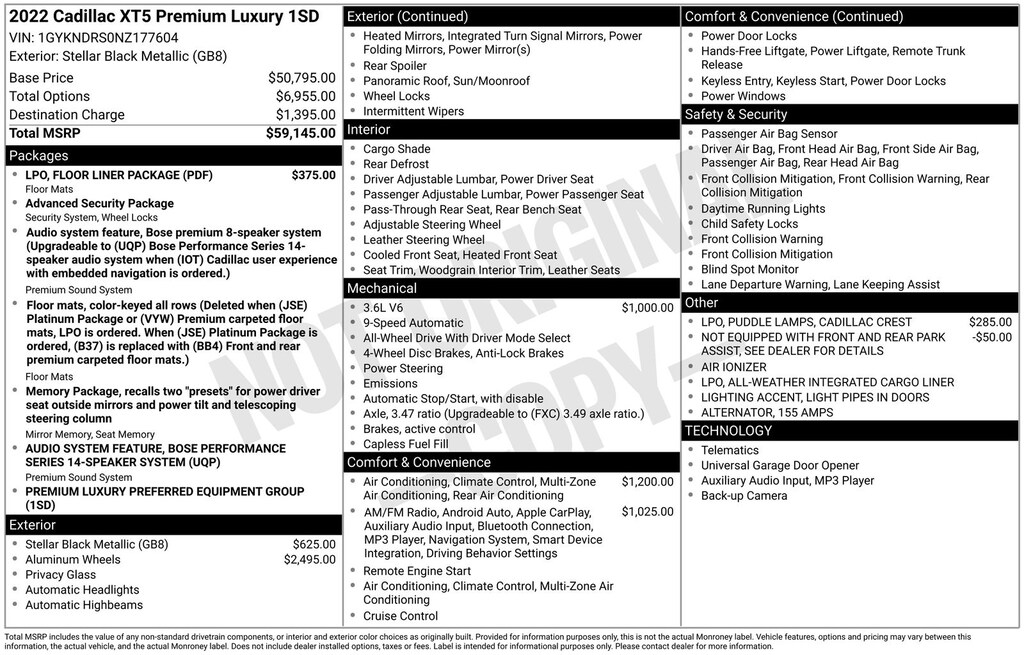 Safety is also a top priority, with advanced driver-assistance technologies like Automatic Emergency Braking, Front and Rear Park Assist, and a Rear Vision Camera to help you navigate with confidence. The XT5's sleek, sophisticated design is complemented by thoughtful details like puddle lamps with the Cadillac crest and an available power liftgate for effortless loading and unloading.