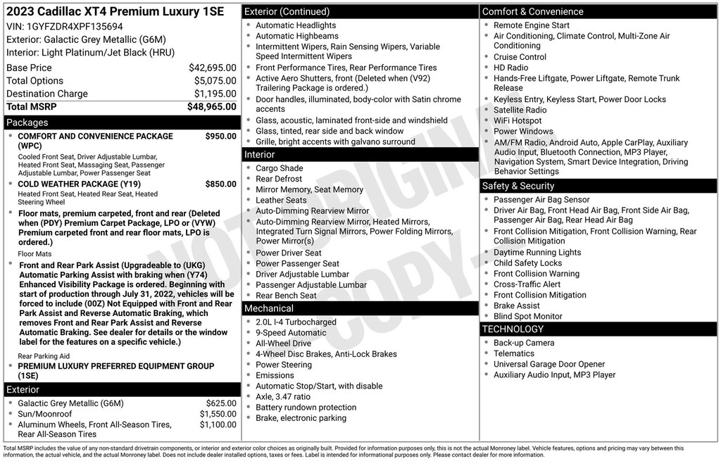 This exceptional 2023 Cadillac XT4 Premium Luxury is a true standout in its class. With its exceptional performance, luxurious amenities, and advanced safety features, it's the perfect choice for the discerning driver. Experience the difference for yourself and schedule a test drive today.