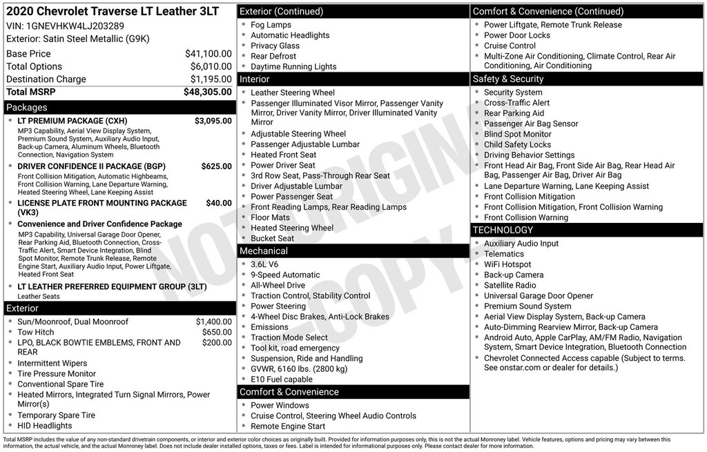 2020 Chevrolet Traverse 3LT Satin Steel Metallic AWD 9-Speed Automatic 3.6L V6 SIDI VVT