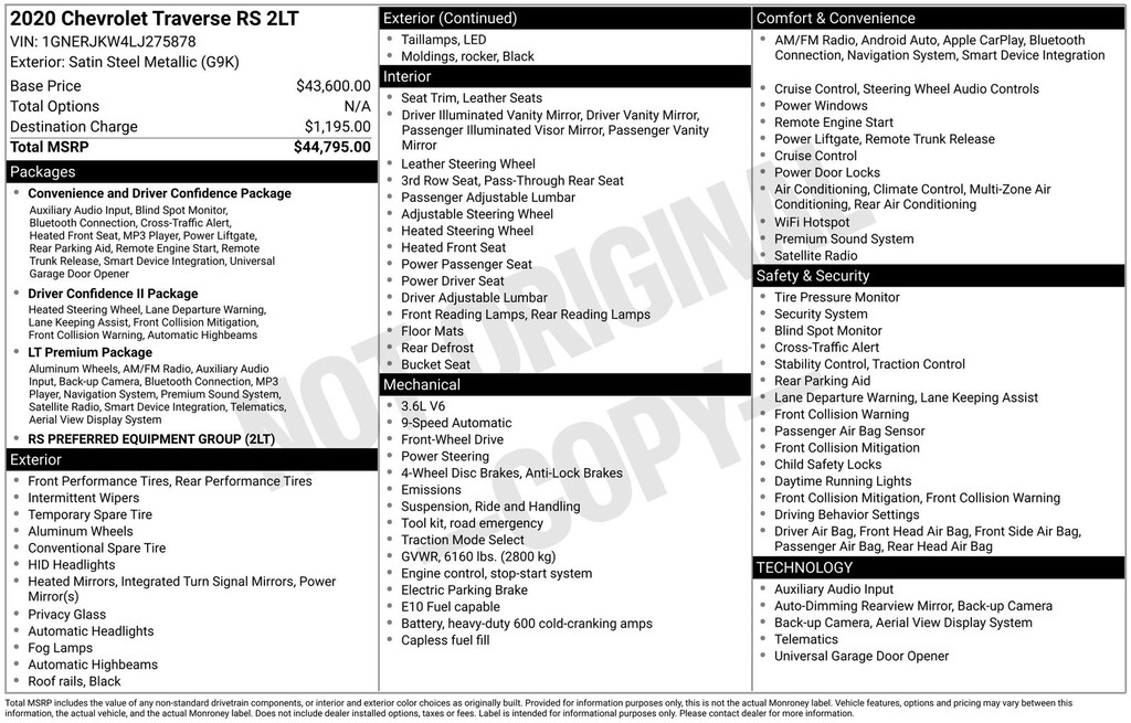 Whether you're shuttling the family, embarking on a road trip, or tackling your daily commute, the 2020 Chevrolet Traverse RS is the perfect companion. Experience the perfect blend of style, capability, and technology that this versatile SUV has to offer.