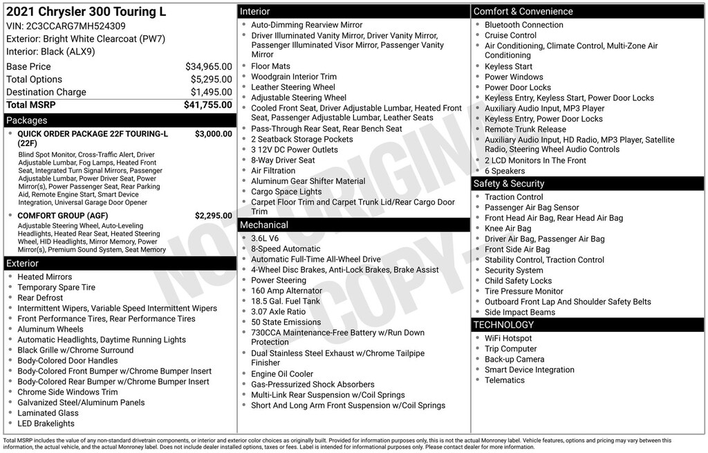 Elevate your driving experience with the captivating 2021 Chrysler 300 Touring. This exceptional sedan combines refined style, advanced technology, and exceptional performance, making it the perfect choice for the discerning driver.