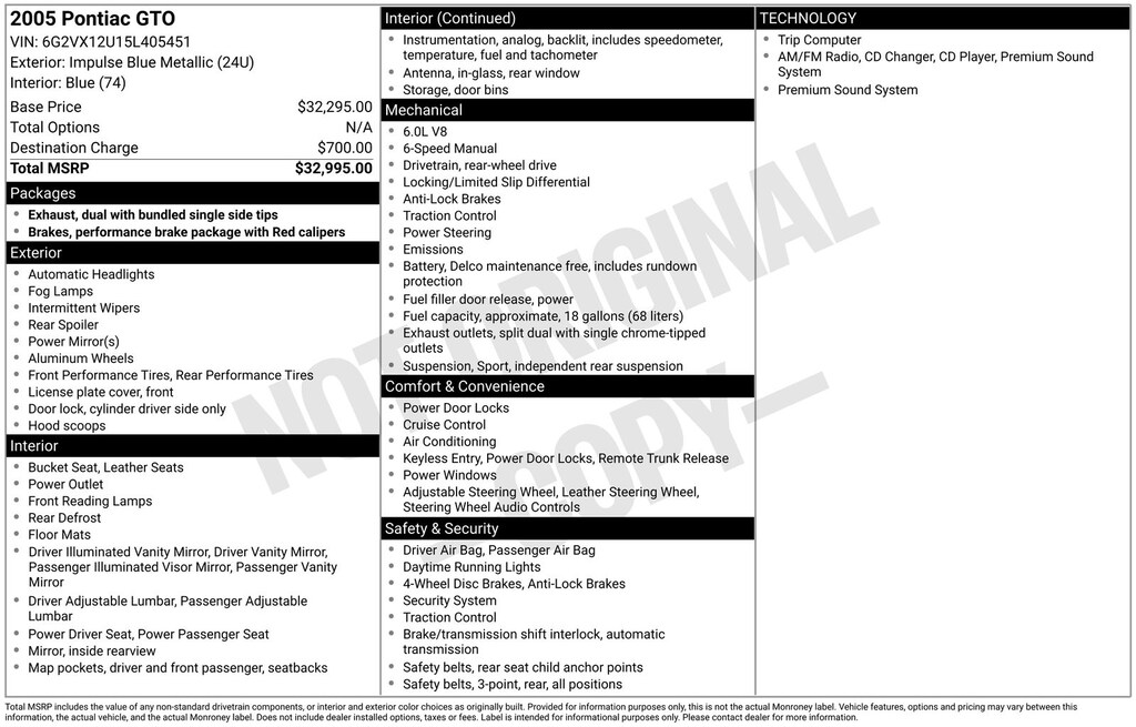 Don't miss your chance to experience the raw power and exhilaration of this exceptional sports car. Schedule a test drive today and discover the joy of owning a 2005 Pontiac GTO Base.