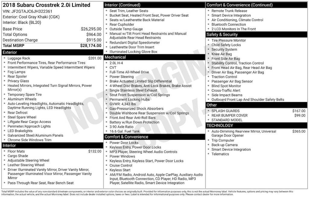 Whether you're tackling the daily commute or embarking on a weekend getaway, the 2018 Subaru Crosstrek 2.0i Limited is the perfect companion. With its impressive capabilities, premium amenities, and eye-catching style, this crossover is sure to exceed your expectations.