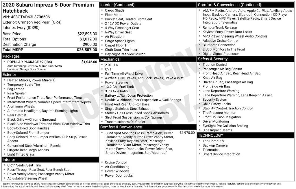 Discover the perfect blend of style, performance, and versatility in the 2020 Subaru Impreza Premium. This exceptional vehicle is equipped with a robust 2.0L DOHC engine, Lineartronic CVT, and Symmetrical All-Wheel Drive, delivering an impressive 28 city/36 highway MPG.