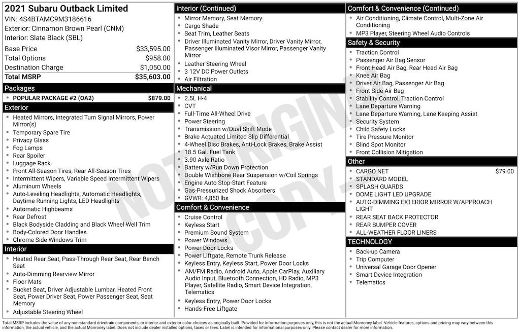 Whether you're navigating the daily commute or embarking on a weekend adventure, this 2021 Subaru Outback Limited is ready to exceed your expectations. Its versatile design, premium amenities, and advanced safety features make it the perfect companion for your active lifestyle.