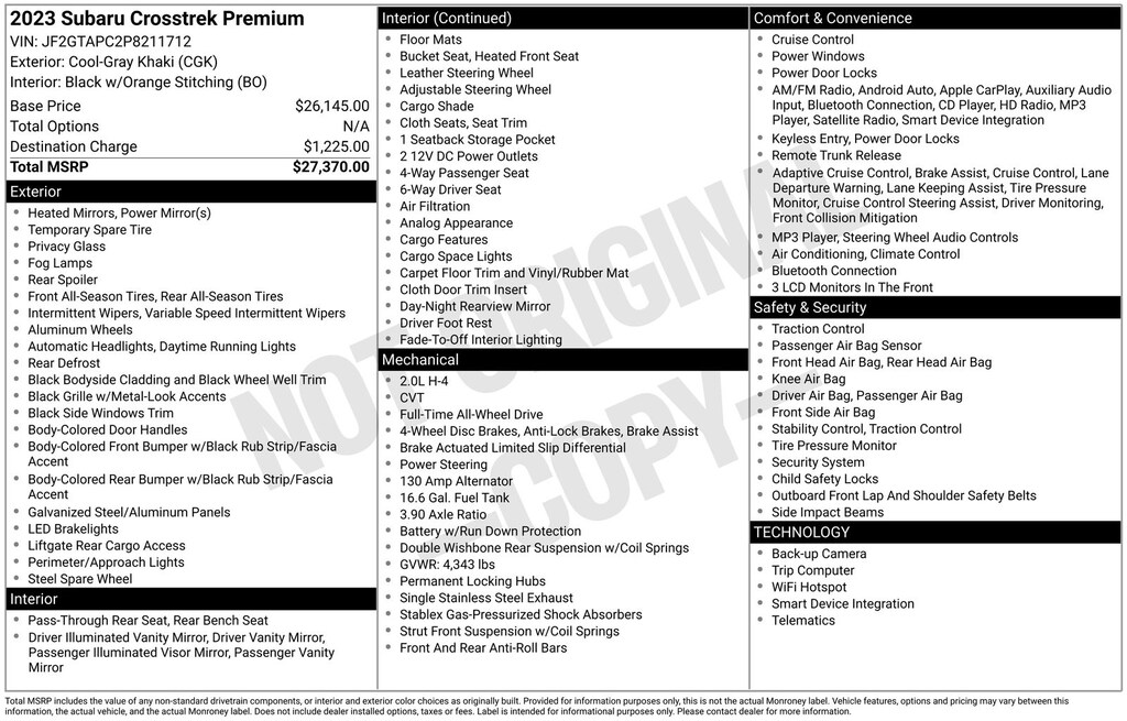 Elevate your driving experience with the 2023 Subaru Crosstrek Premium. Its exceptional blend of performance, technology, and safety features make it a standout choice in the compact crossover segment. Visit our showroom today to explore this remarkable vehicle and discover how it can enhance your driving life.