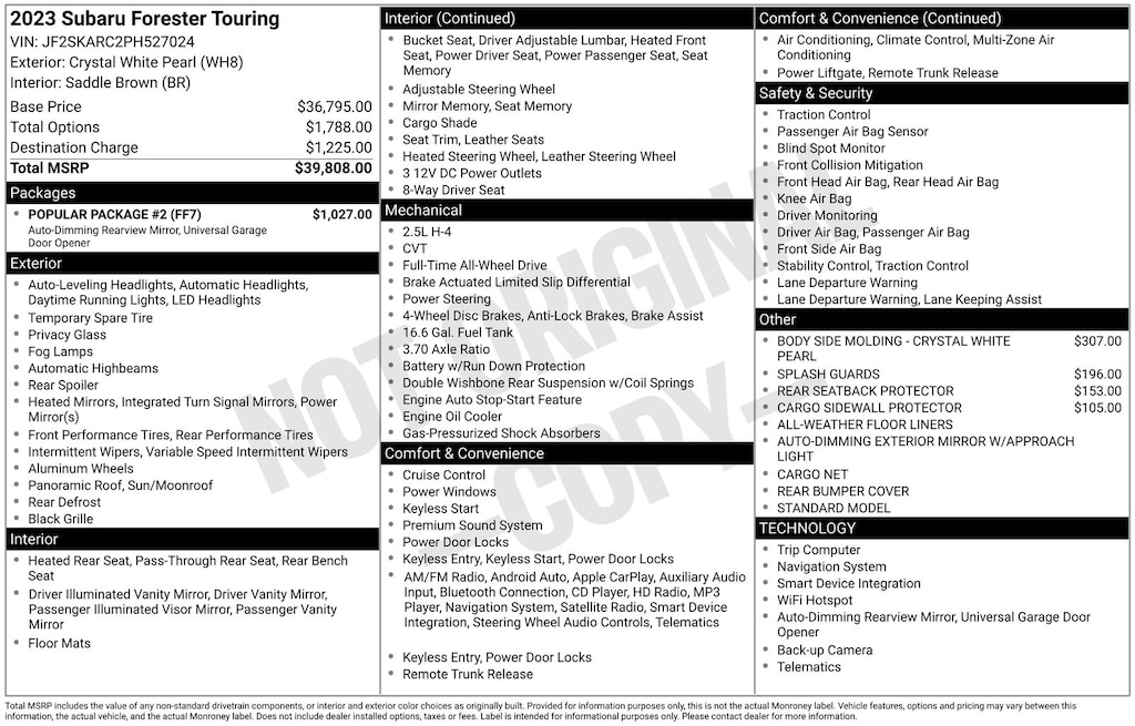 Tailored to your needs, this Forester Touring boasts an impressive array of custom enhancements, including: